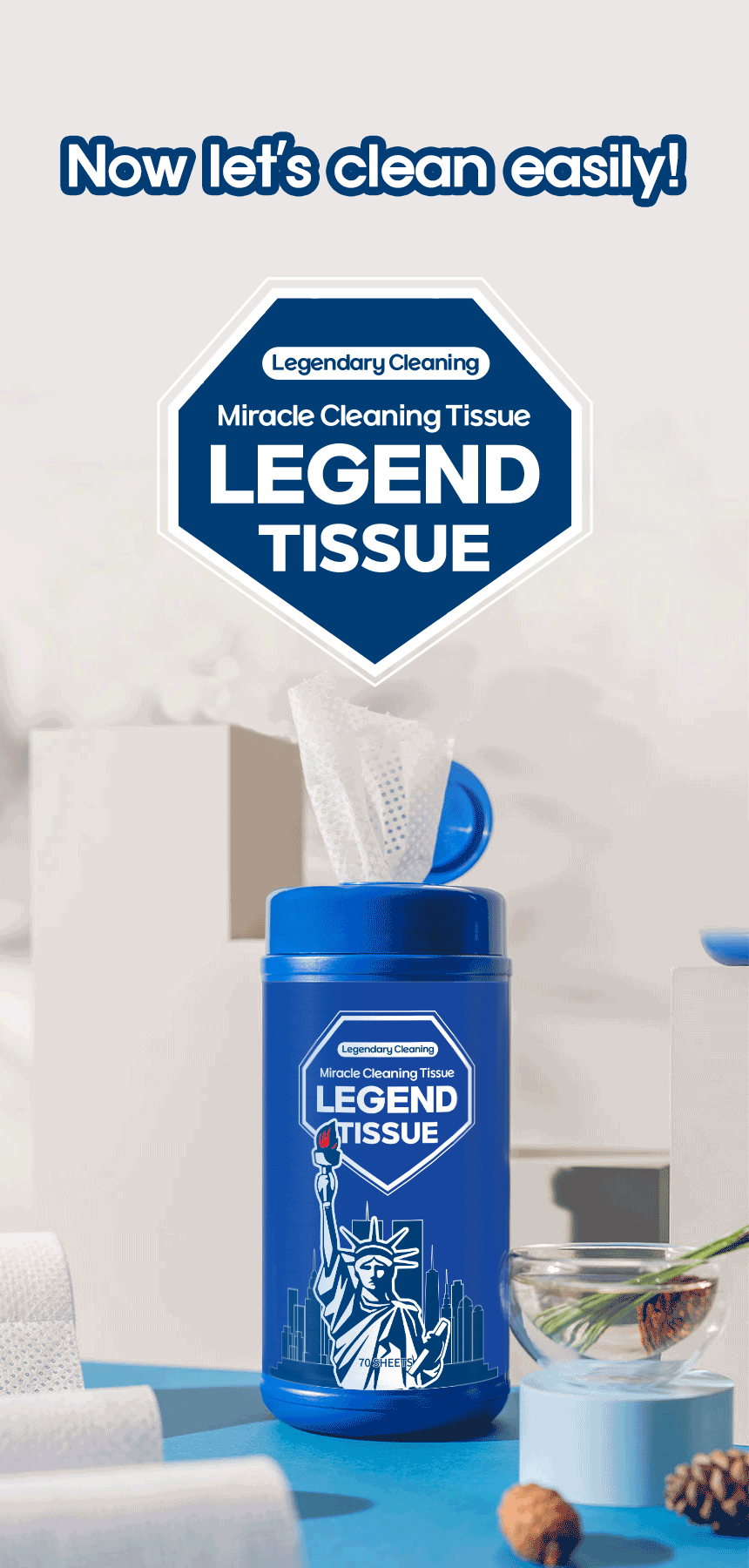 LEGEND TISSUE Miracle Cleaning Tissue is your go-to solution for efficient cleaning on the move. With 70 sheets per container, this product is designed to handle all types of messes, whether it's cleaning kitchen counters, wiping off dust, or removing stains from various surfaces. The easy-to-use packaging and durable tissue make it ideal for quick clean-ups at home, in the office, or while traveling. Infused with powerful cleaning agents, LEGEND TISSUE delivers exceptional cleaning performance, leaving surfaces spotless without the need for additional cleaning products. A must-have for anyone seeking a reliable and convenient cleaning solution.